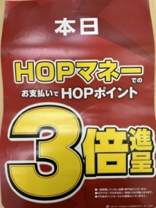 本日3月23日はHOPマネーでのお支払いでHOPポイント3倍進呈となっております。