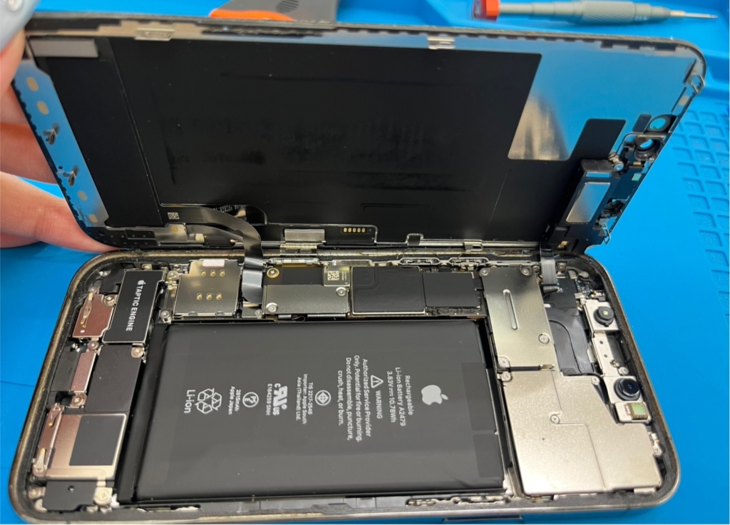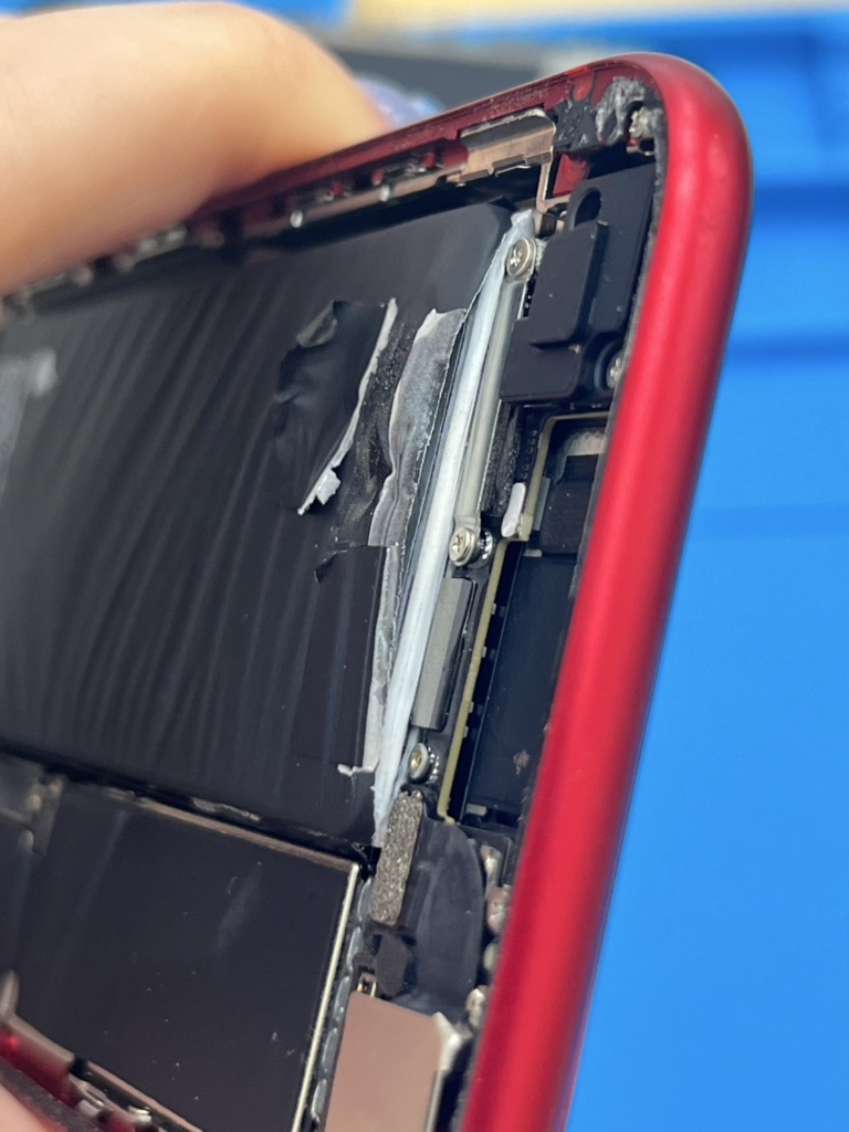こんにちはイカツイ店員です。 頑張って更新しよう。 今回は滋賀県栗東市のiPhoneSE3です。 一週間前から刺激臭がしてて昨日電源がつかなくなったと持ち込まれました。 『刺激臭』この単語がでるとほぼ確定でバッテリーが裂けていることが多いです。バッテ... -